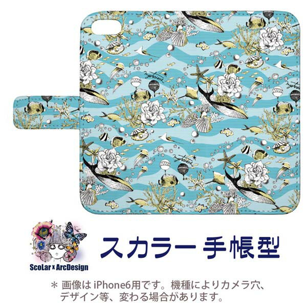 スカラー 手帳型ケース【ほぼ 全機種対応】iPhone X iPhone8 SO-05K SO-03K SH-03K SOV37 702SO SHV42 706SH UQ mobile Xperia AQUOS Galaxy arrows スマホケース スマホカバー 大人気 アイテム クジラ サカナ クラゲ フラワー 海中 ダイアリー プレゼントに♪